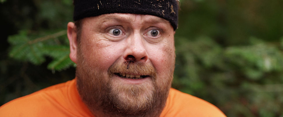 An unfit, self-conscious jogger stumbles across a dead body deep in the woods.